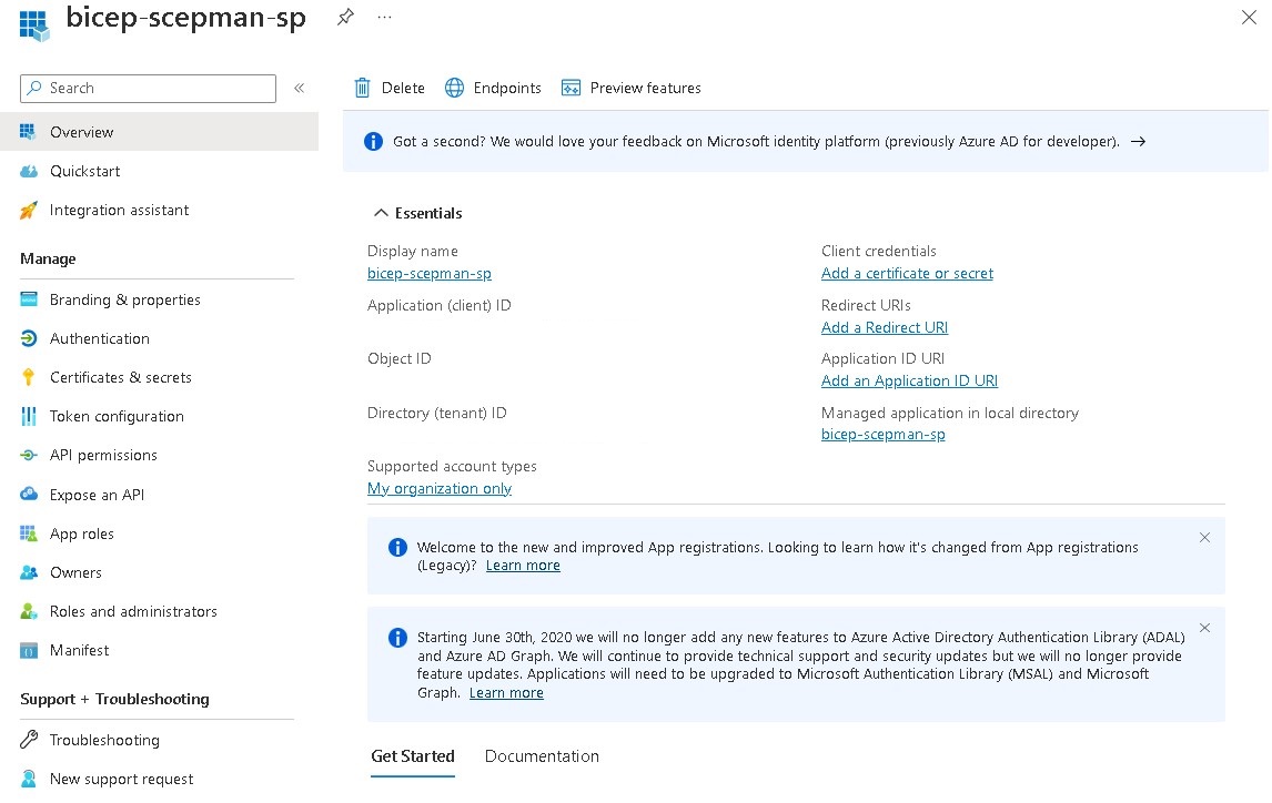 Give it a meaningful name (for this example i will use bicep-scepman-sp)