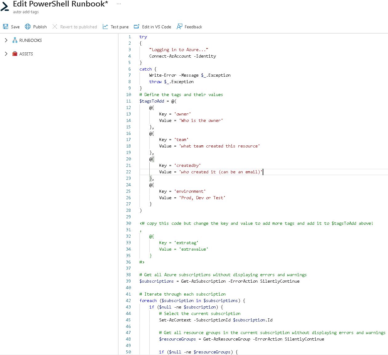 Now you have a Runbook/script that adds tags to all resource groups in your subscription and add the tags to new resource groups that are created in the future.